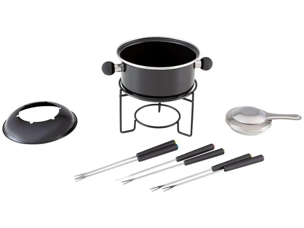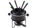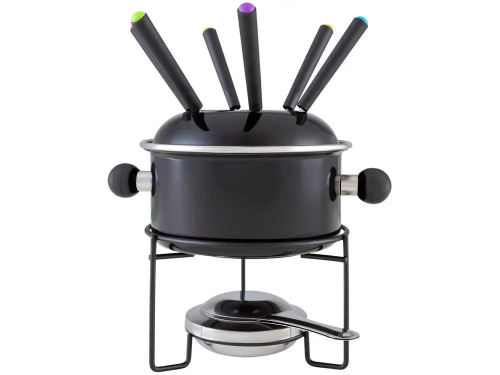 Com panela esmaltada resistente, base de apoio em ferro e queimador em aço inox, o conjunto vem com 6 garfos e 1 garfo guia — tudo para que você aproveite com conforto e segurança. O design moderno na cor preta combina com qualquer mesa posta e valoriza ainda mais sua experiência gastronômica.