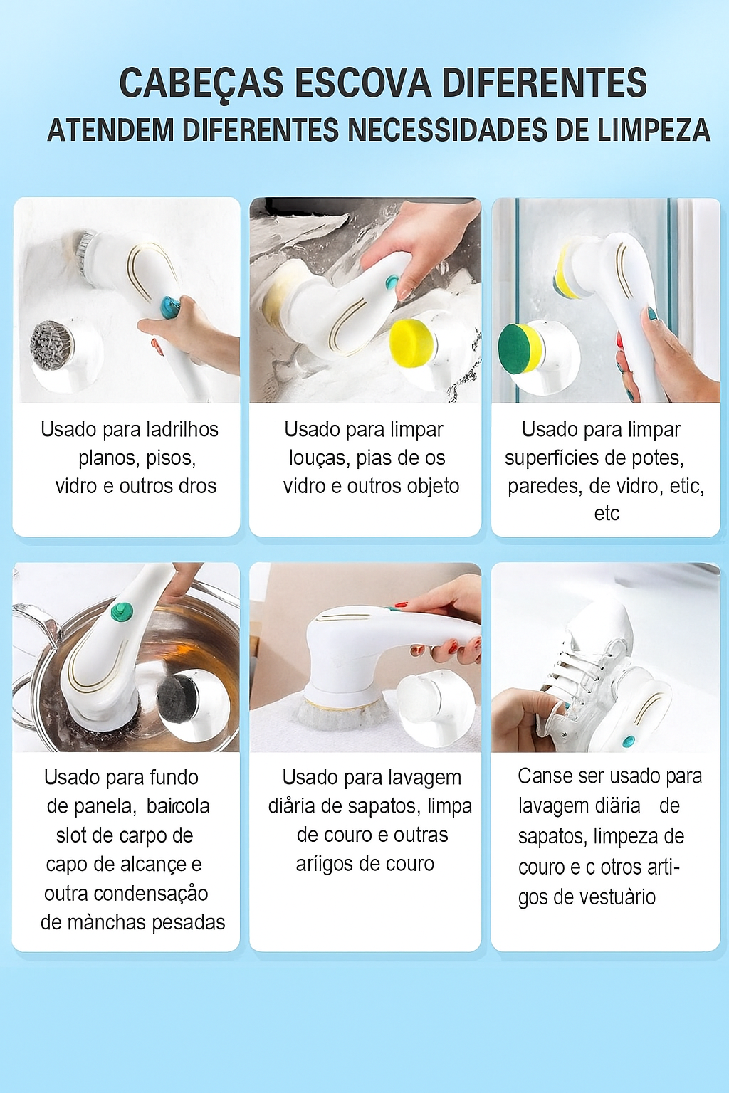 ✔5 escovas diferentes para cada tipo de limpeza