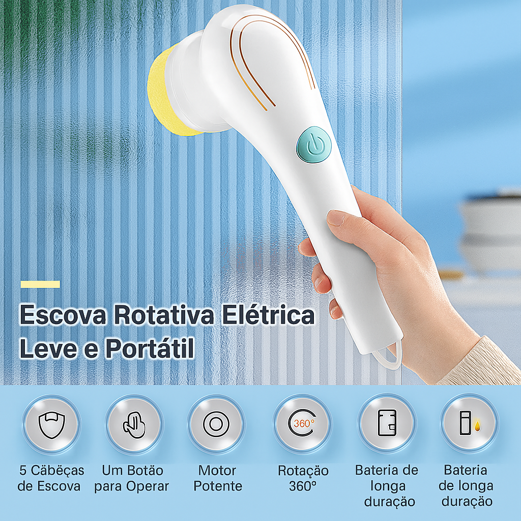 PowerClean 5 em 1 – Escova Elétrica Rotativa para Limpeza Profunda