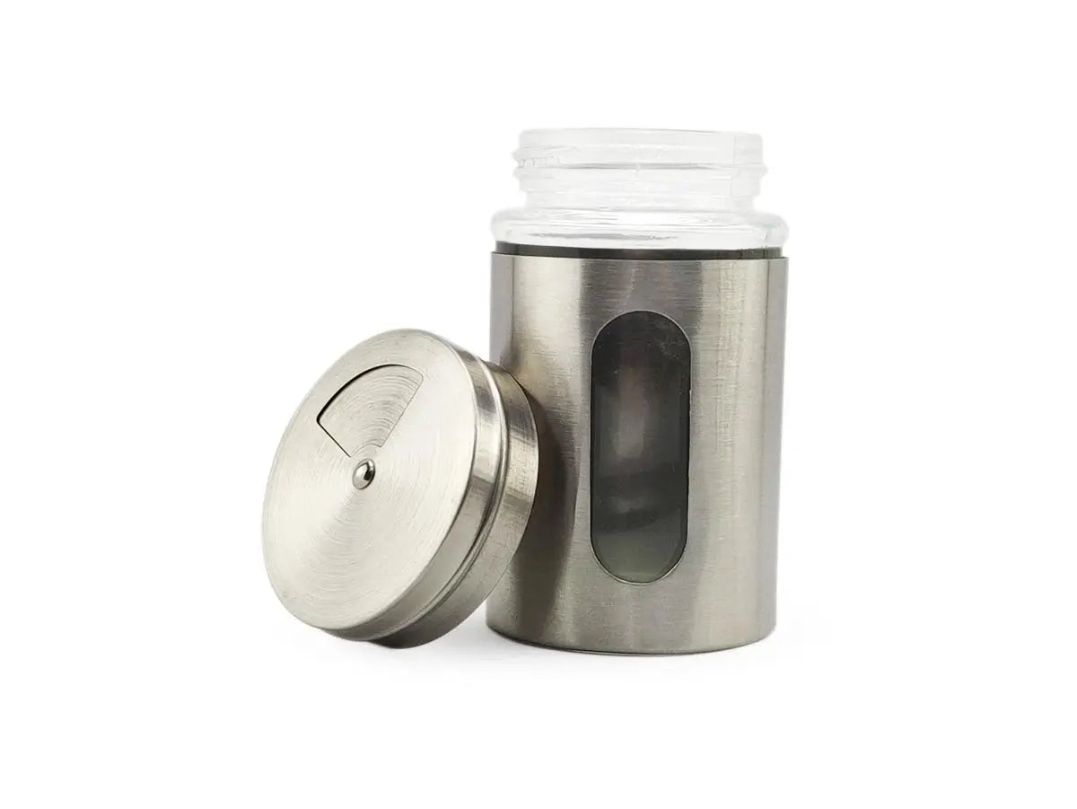 SteelGlass Spice – Kit Porta Condimentos em Vidro e Inox com Vedação Hermética