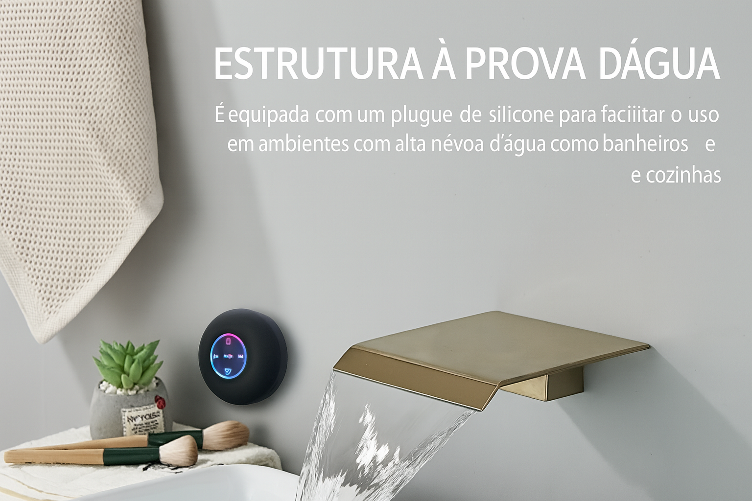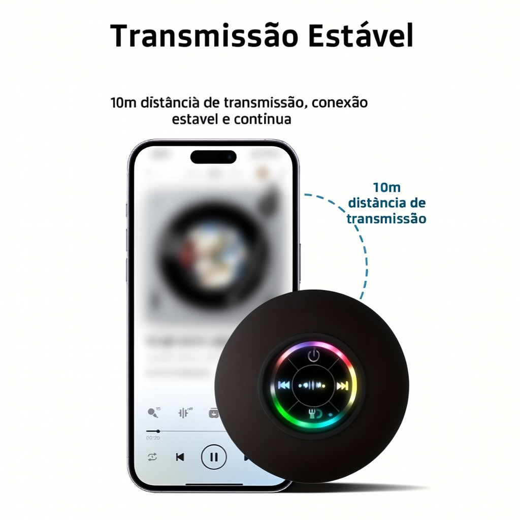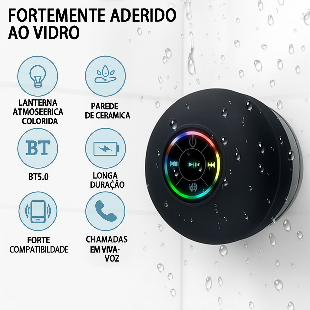 Som potente, luz ambiente e ventosa forte – Leve sua música para o banho, a cozinha ou onde quiser!